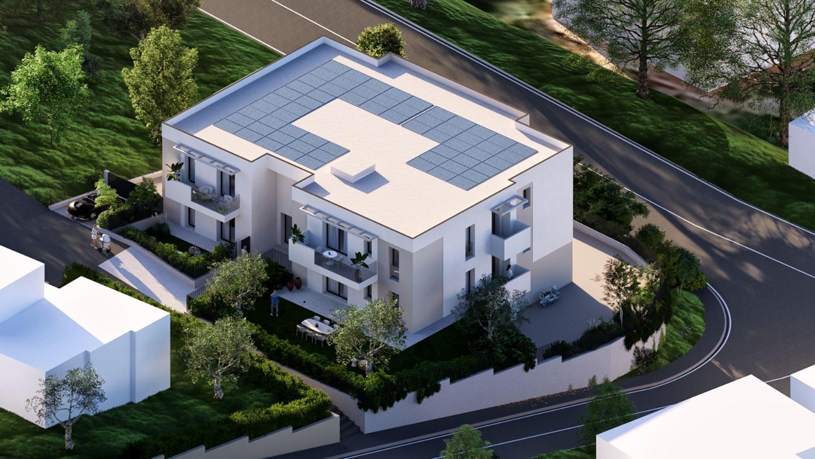 APPARTAMENTI in nuova costruzione in splendida ed elegante Palazzina disposta su 2 piani, dotata di ascensore, sita in Zona Residenziale, immobile di pregio con finiture personalizzabili, CLASSE A/4, L'edificio adotterà i più moderni criteri costruttivi sia dal punto di vista strutturale che impiantistico, utilizzando dotazioni tecnologiche mirate al risparmio energetico tra cui impianto fotovoltaico, caldaia con pompa di calore e riscaldamento a pavimento, predisposizione per ventilazione meccanica e allarme. APPARTAMENTI composti da: soggiorno e cucina in openspace, camera matrimoniale, camera singola, bagno, balconi loggiati, garage a partire da €. 219 MILA.